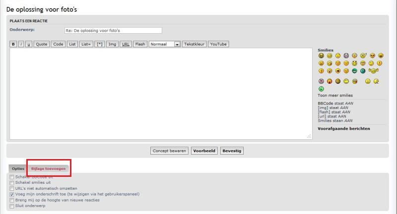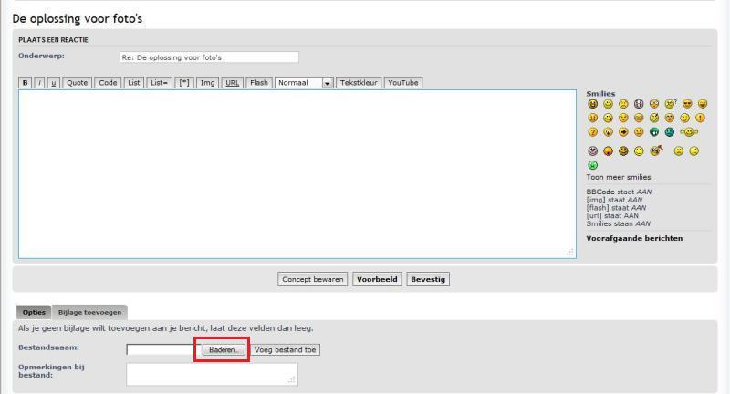 Hier is de werkwijze voor het plaatsen van foto's via het forumsysteem in 6 stappen met foto's: