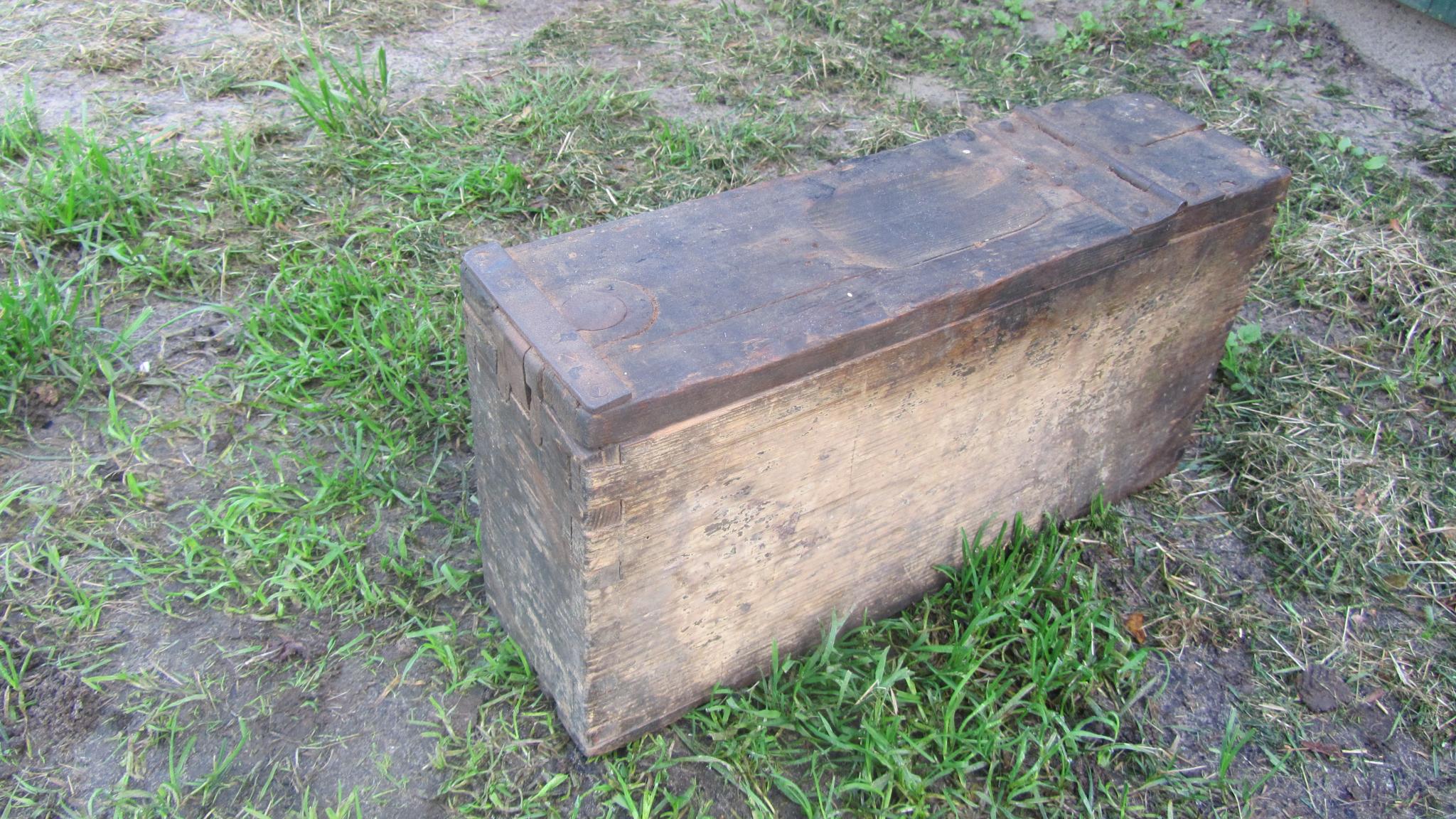 Dat het munitiekistje is door gebruikt voor iets anders zou heel goed kunnen. De handgreep die bovenop het kistje behoort is verwijdert en ook de uitsparing onder de handgreep is ingelegd met hout. Zie; http://www.quartermaster.nl/index.php/k ... zlose.html .
