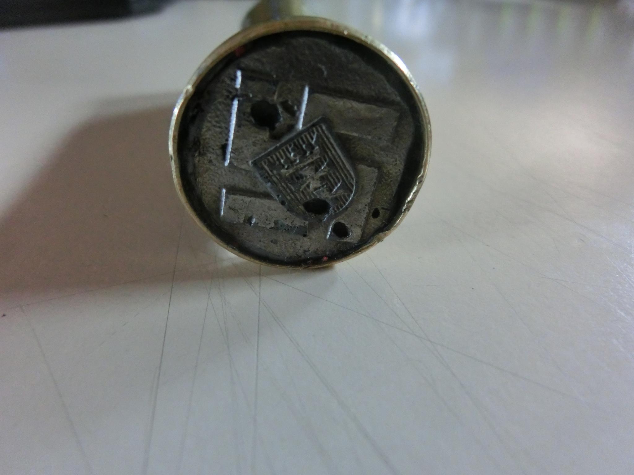 Er lijkt iets van een stadswapen in te staan, weer eens wat anders dan een stempel. Had dit nog niet eerder gezien, een Petschaft.