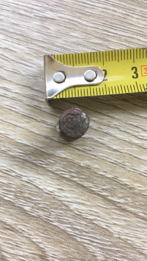 Hij is 2cm lang en ongeveer 9mm breed. Op de onderkant staat een u in een schild.