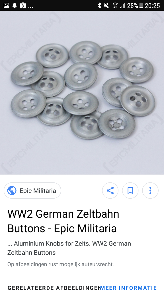 Klopt, je bent mij net voor!WO2NLLzoeker schreef:Die hebben toch 3 gaatjes?MemyselfandI schreef:Ik denk van een Zelthbahn