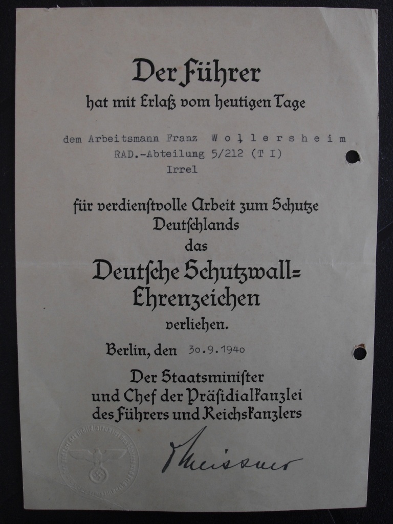 een stukje geschiedenis van een medic. Hij zat bij de Hitlerjugend (sportookonde), ging vervolgend bij de RAD (deze eenheid heeft ook in Nederland gewerkt trouwens) en kreeg hier de Westwall medaille. Ging vervolgens als medic naar het oostfront en kreeg hier de WIO en het KVK. Ik heb de losse medailles er ook bij, maar die kennen jullie wel.