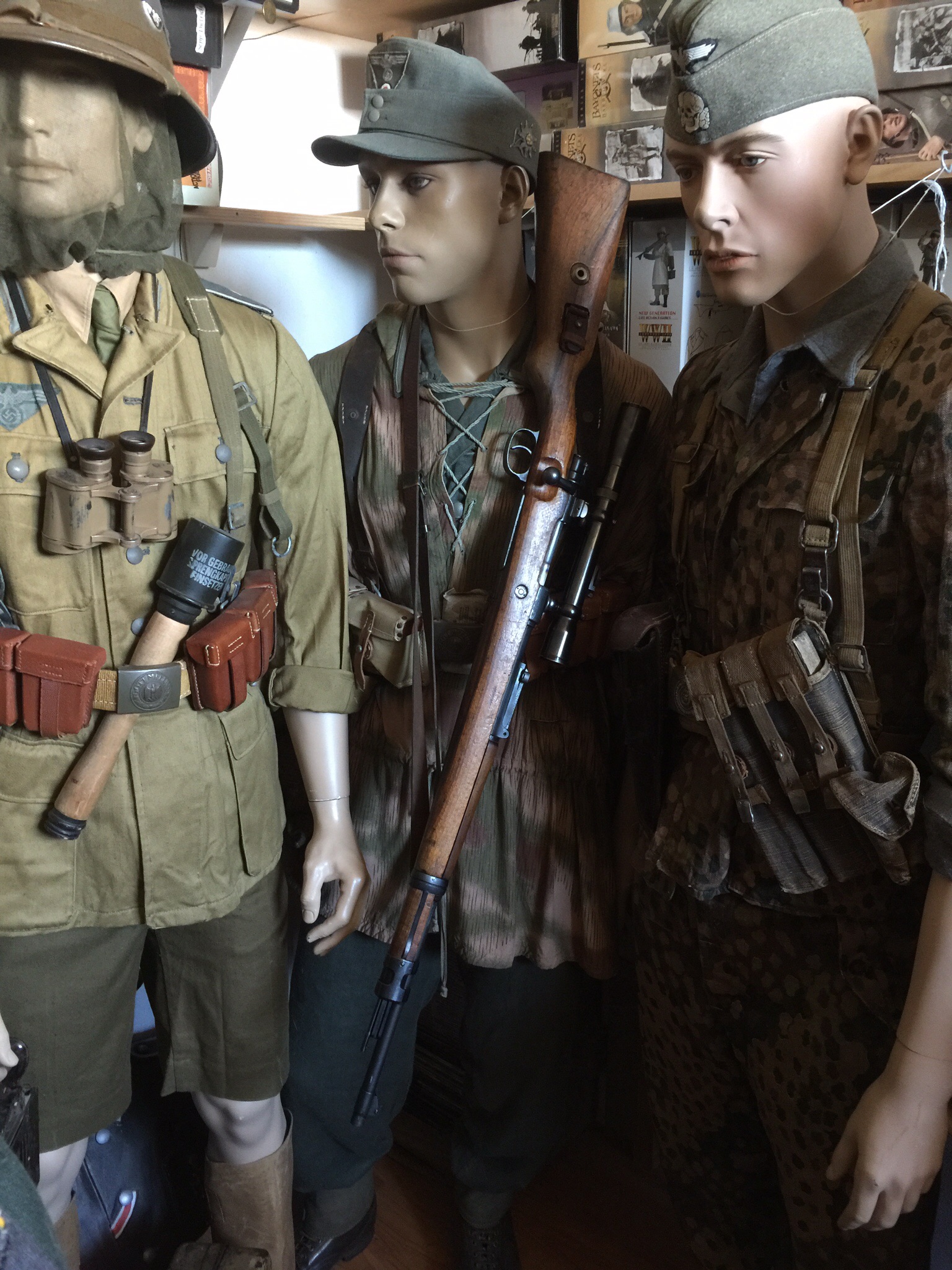 Het zal idd niet de gebruikelijke combi zijn zoals jij al aangeeft maar vind het ook niet slecht staan om op een pop te zetten die een sniper uitbeeld. (Tenslotte is het geen repro geweer en kijker) Omdat je ook wel echt een kenner moet zijn om de kijker te kunnen indentificeren als een kijker die in eerste wereldoorlog zeker gebruikt is. Alles bij elkaar vind ik hem er wel leuk uitzien en zou het ook niet aan iemand gaan wijs maken dat het een correcte helemaal tekstbook sniper mauser is maar zoals gezegd met een paar kanttekeningen. Ik heb vernomen dat een goeie correcte tekstbook sniper (bijna onmogelijk te vinden)als je die al kan vinden en kopen waanzinng duur kan kosten