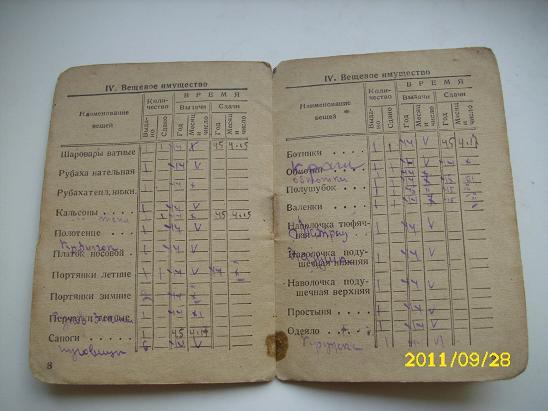 Eind 1942 werd het bakelieten kokertje vervangen door een ID boekje, de zogenaamde Krasnoarmeiskaja knizjka (zie onderste foto). Dit ID boekje bevatte o.a. de personalia en een lijst van de verstrekte militaire uitrustingsstukken. In theorie werd aan elke Sovjet soldaat zo’n Krasnoarmeiskaja knizjka verstrekt.