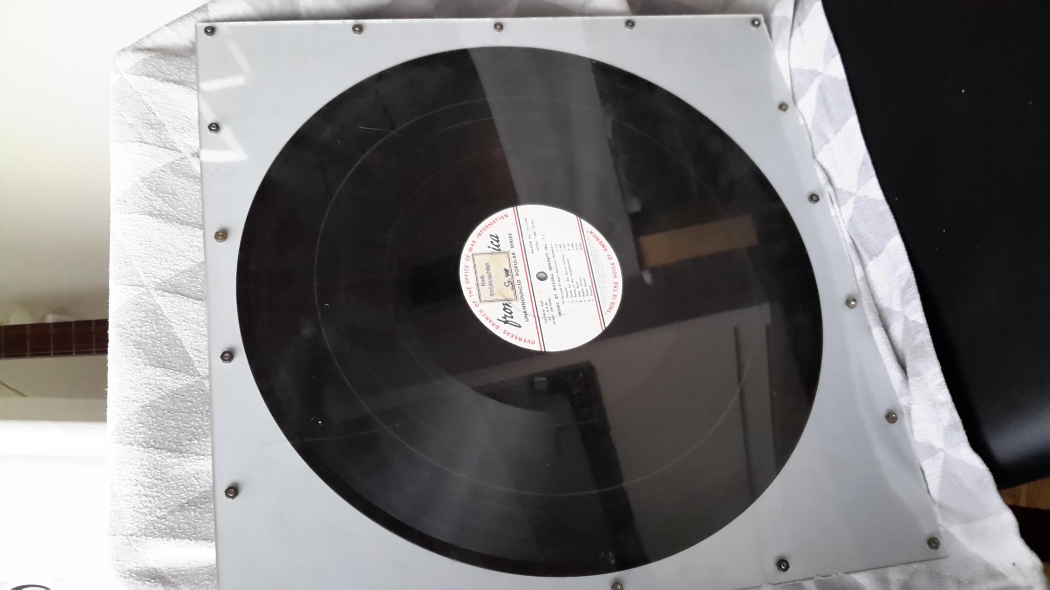 Ik ben via mijn opa in het bezit gekomen van een grote bioscoop lp die onder oorlogsnieuws uit de US werd gedraaid.