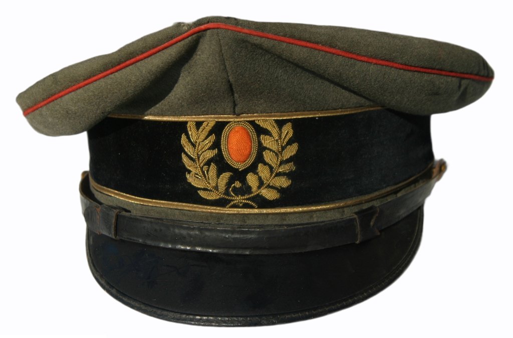 Dat is een Nederlandse M1912 pet. Is maar kort gedragen en hoorde bij de eerste uitgave van het Nederlandse grijze uniform (invoer omstreeks 1912) Wordt eigenlijk alleen tijdens WW1 nog gedragen, daarna snel het veld geruimd voor de kepi (die er overigens ook al was!)