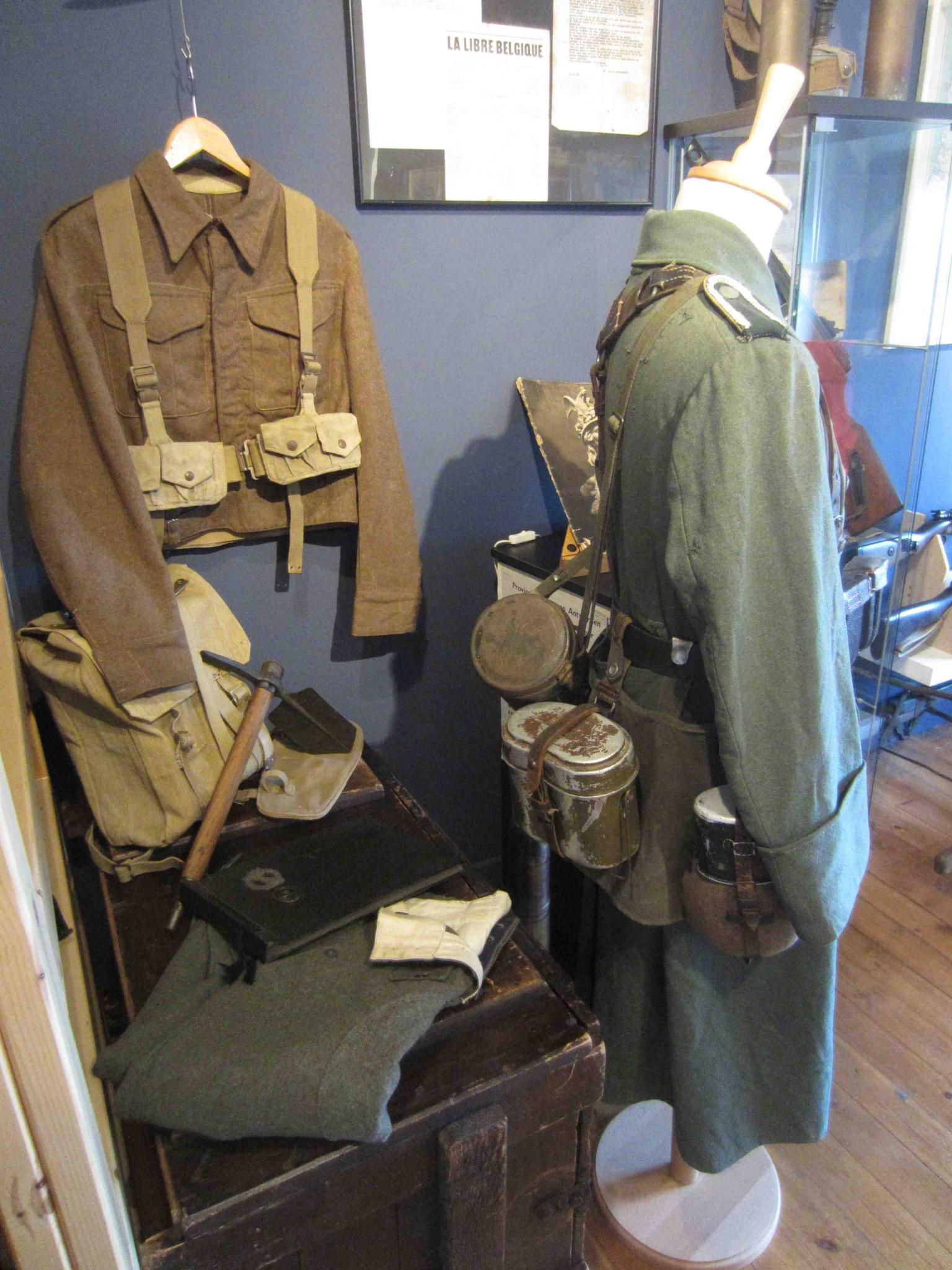 Ik heb ook een oude tabakskoffer in mijn kamer gezet, waar ik mijn duitse M43 Broek op heb gedisplayed, samen met mijn fotoalbum en wat Britse webbing.