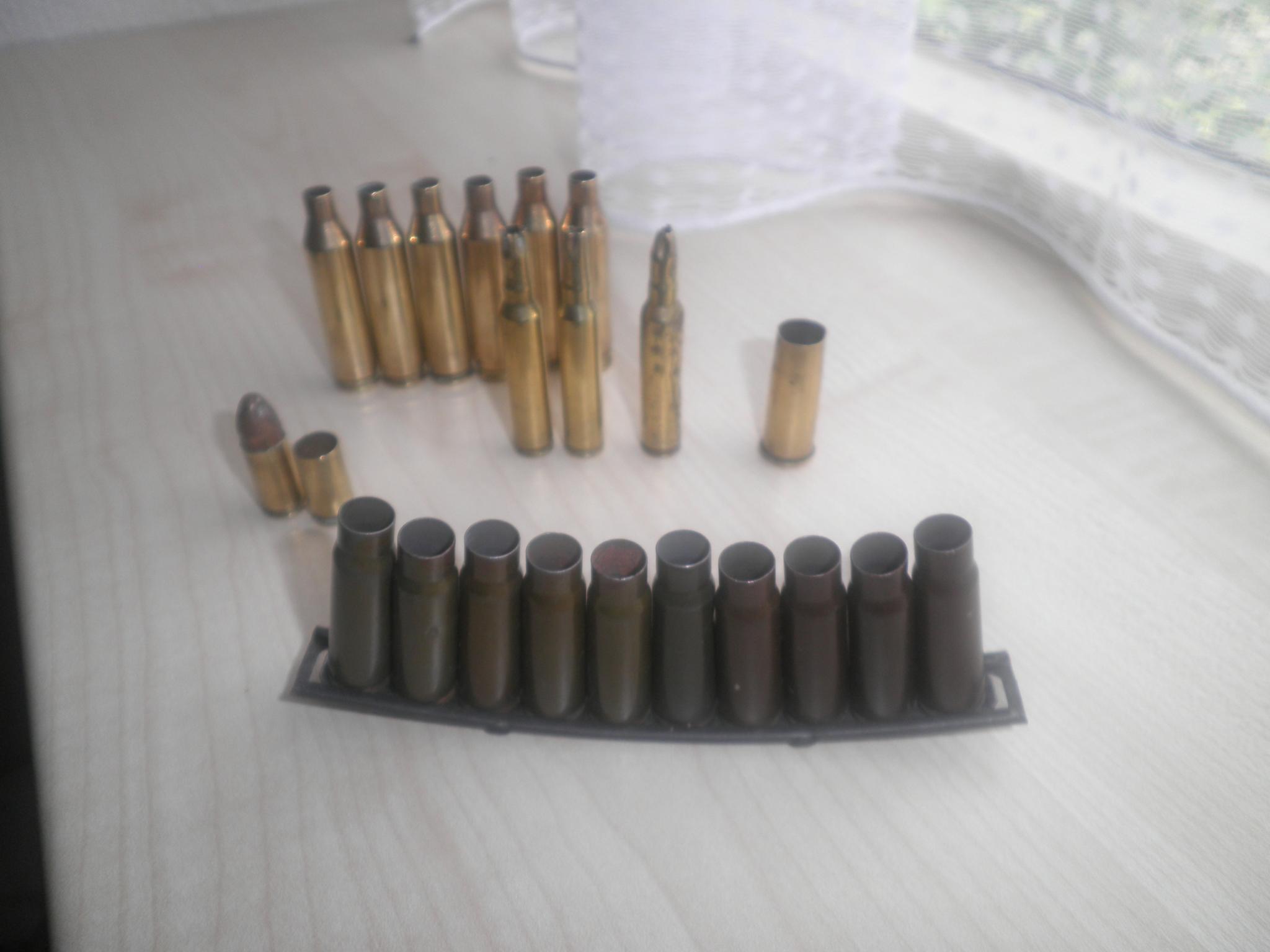 1 .50 BMG (met kop), 1 clip Mosin Nagant hulzen en 1 clip Mauser K98 hulzen (+2 losse)