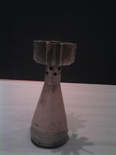 Alles zo een beetje: 1. Engelse granaat? Van de oorlog? Is wel overschilderd, was oorspronkelijk kaki groen. 2. Mortier munitie. zonder kop. Van achter staat er cf 166 N 81 op.