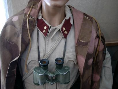 Dan voor de liefhebber nog maar een foto van een Hongaarse artillerie zomerblouse (komt qua stof vrij dicht bij het Duitse drillich) met hongaarse kijker en tentzijl/poncho.