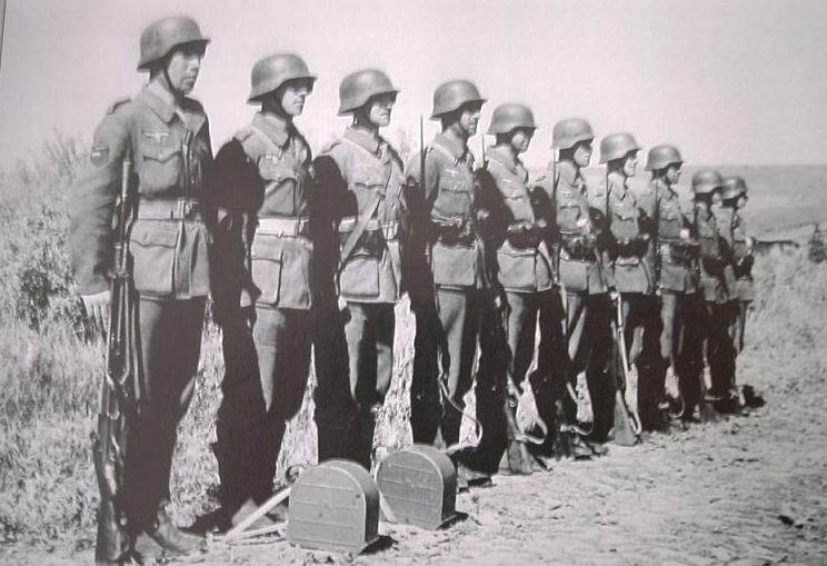 Foto Darryl: nette foto de kerel links bovenin draagt een Nederlands schuitje met de Duitse insignes aangebracht! Very nice!