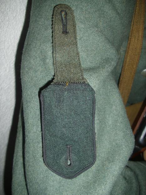 Met onbekende schouderstukken, zwarte rand ?? Vorm is typisch voor russische vrijwilligers maar de herkomst van deze zijn mij onbekend.