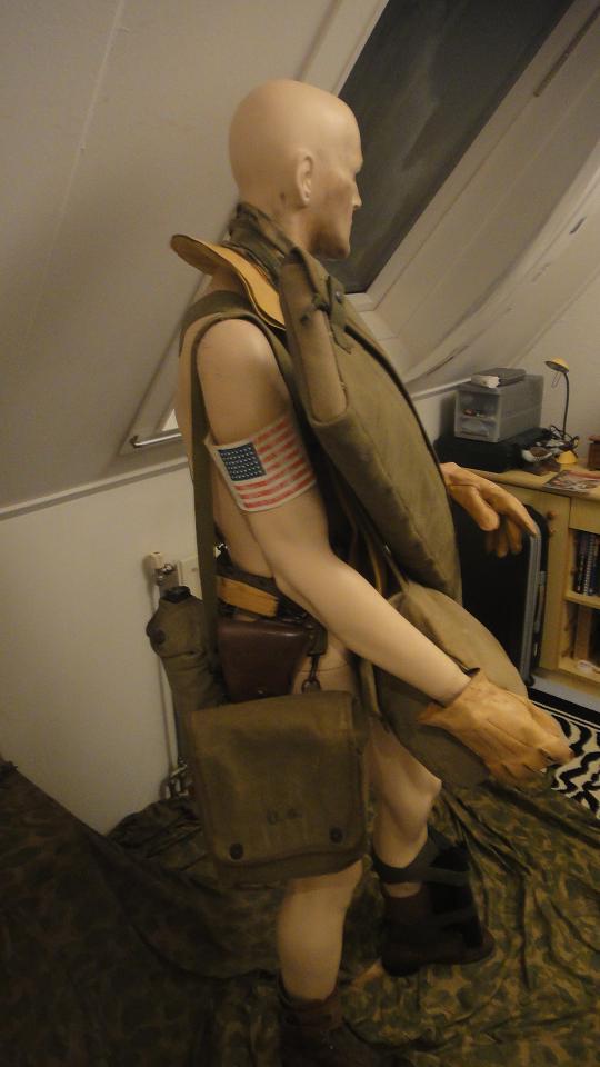 Als je op de tour gaat van alleen originele spullen, en ik mag je een tip geven, zou ik de gasmaskertas vervangen door een versie met vier drukknopen ipv 3 LTD's (=postwar).