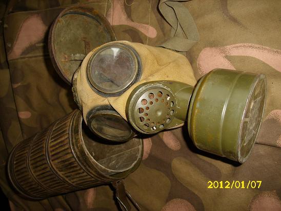 Weer een nieuwe aanwinst, een gasmaskerbus compleet met gasmasker en filter.