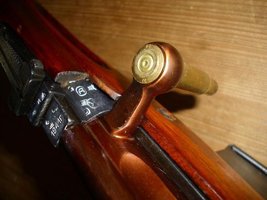 Het gat in de grendel had de grote van een patroon. Indien het wapen haperde paste hier een patroon in zodat men meer kracht kon uitoefenen om de grendel te openen.