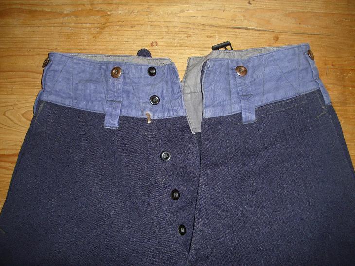 Donkerblauwe wollen officiersbroek M1935 zonder knieversterking uit 1940. Bovenzijde en onderzijde van katoen.