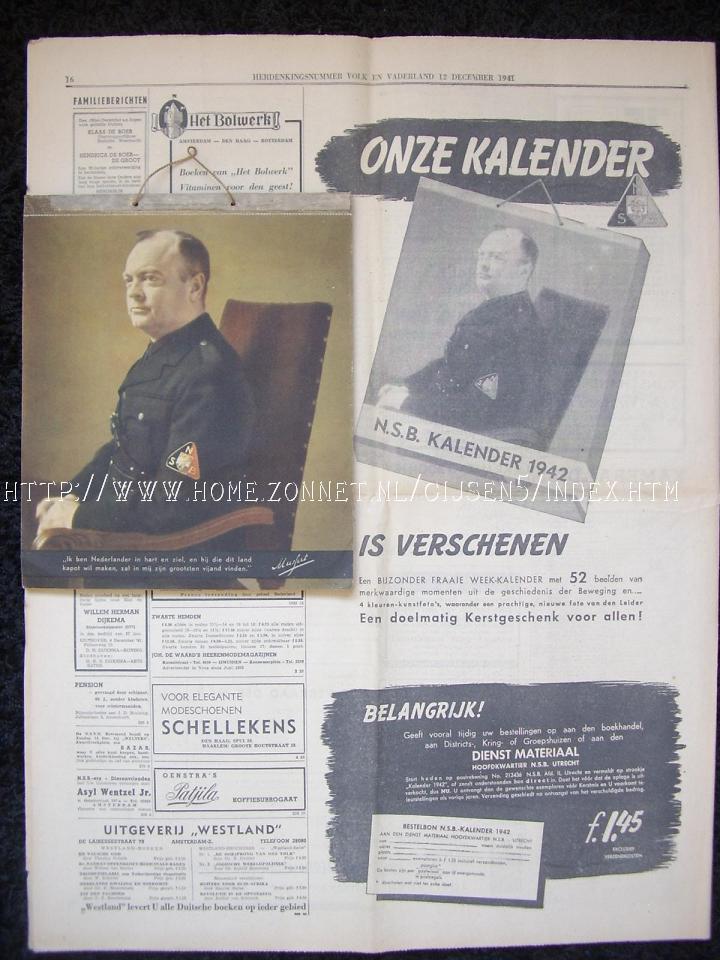Als je de advertentie (Volk en Vaderland) op de achtergrond bekijkt zie je staan 52 deelden (foto’s) en 4 kleuren-kunstfoto’s.