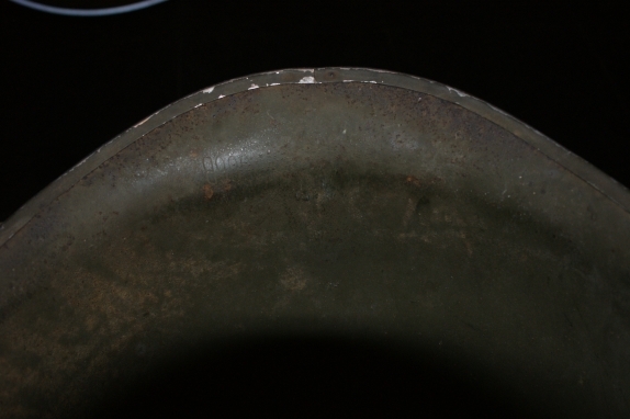 De helm is een M1 model met 'Fixed Bales". Dat is een redelijk vroegoorlogs model helm. De binnenhelm is ook vroegoorlogs, te zien aan het kleurloze ijzerwerk binnenin. De makerstempel van de binnenhelm (M1 model Liner) zit in het midden van de binnenzijde.Guibo schreef:Kan mij iemand helpen aan informatie over enerzijds de helm