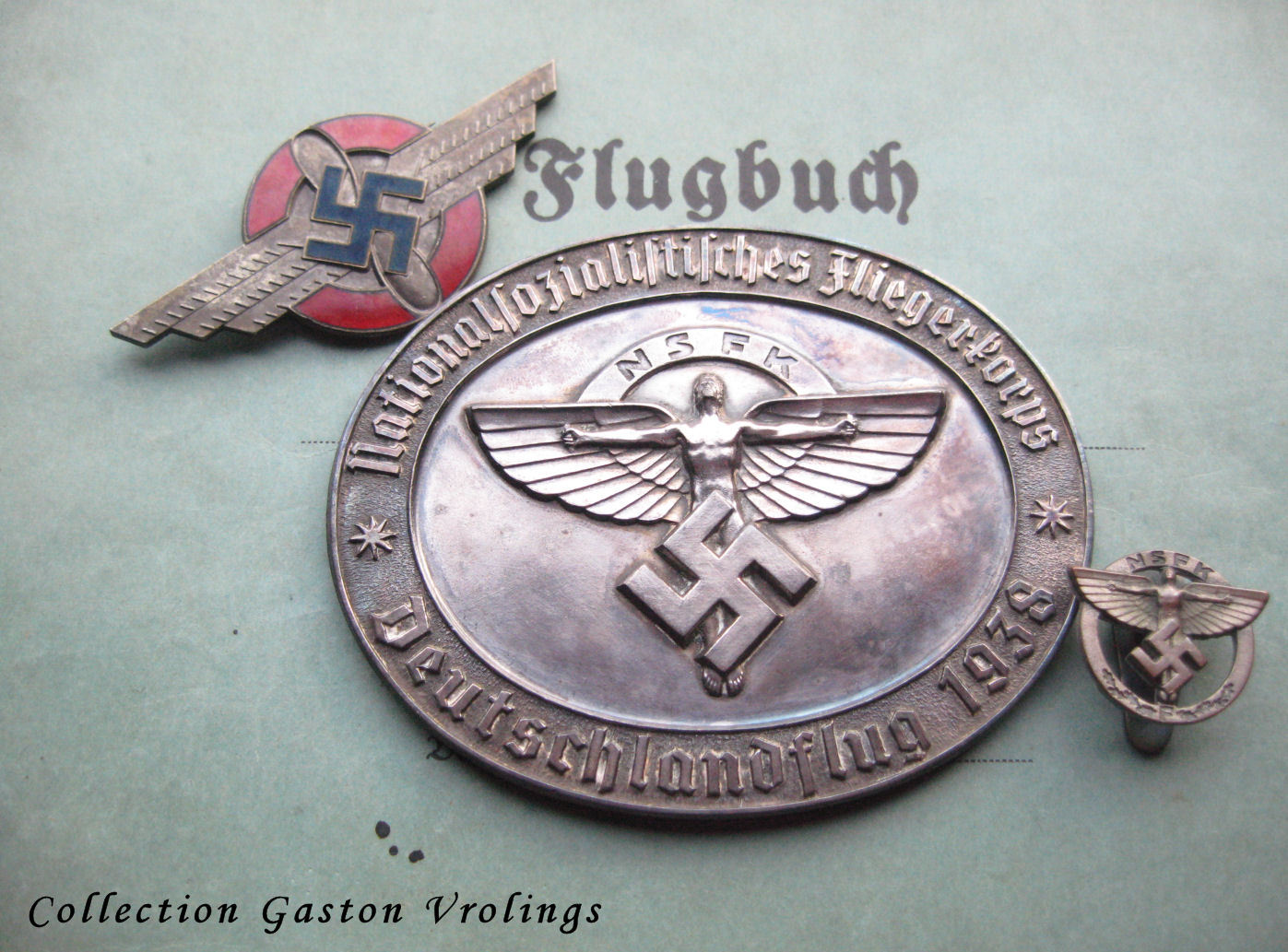 Nog even mbt de zilveren exemplaren. Het moge bekend zijn dat deze plakettes niet alleen zijn uitgegeven voor de Deutschlandflug van 1938, maar ook voor enkele andere vliegevenementen. Zo bestaat er ook een kleinere variant van deze plakettes, met een afmeting van slechts 4,8 bij 6 cm. Voor wie het interesseert: Op Germanwarbooty.com staat een kleine zilveren plaque met zeer laag nummer (13!) voor het 1939 NSFK Reichswettbewerb f. Segelflugmodelle Wassertruppe Rhön. Helaas wel zonder doosje en met wat schade. Het is echter een retezeldzaam item!!!