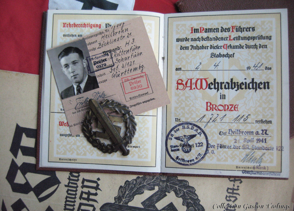 SA Ehrenbuch en SA Fuhrungsheft nr 1 (zijn er maar twee van uitgegeven uit naam van de Stabschef der SA!), het Ehrenbuch is een hele dikke luxueus uitgevoerde pil en gaat over de kampfzeit van de SA, niet zo makkelijk te vinden.