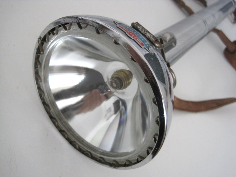 De zaklamp van de Stropers.. bijgaand ziet men zo'n staaf lamp uit laat 50 begin 60e jaren. Ik heb deze voor 20 jaar terug gekregen van een oud stroper, die deze lamp voor dit doel in genoemde tijd had gebruikt. Deze staaflamp heeft een flinke lengte en een enorme reflector van maar liefs 120mm in doorsnede met parabool spiegel die een punt licht kan werpen van meer dan 300meter de lengte is deelbaar voor 3 - 4 + 7 dikken 1/5 V cellen op volle lengte meet de lamp 20 #inch =51 cm . Het merk Ray O Vac type ''sportsman'' gemaakt in de USA ,ik heb voor vergelijk een (HJ) stablampje 1936 van 12 cm op het einde gelegd dan kun je pas de werkelijke afmeting van deze reus zien lamp is nog in nieuwstaat en werkt normaal, robuust uitgevoerd en kan tegen een stootje deze kom je hier bijna nooit tegen alleen in de USA.
