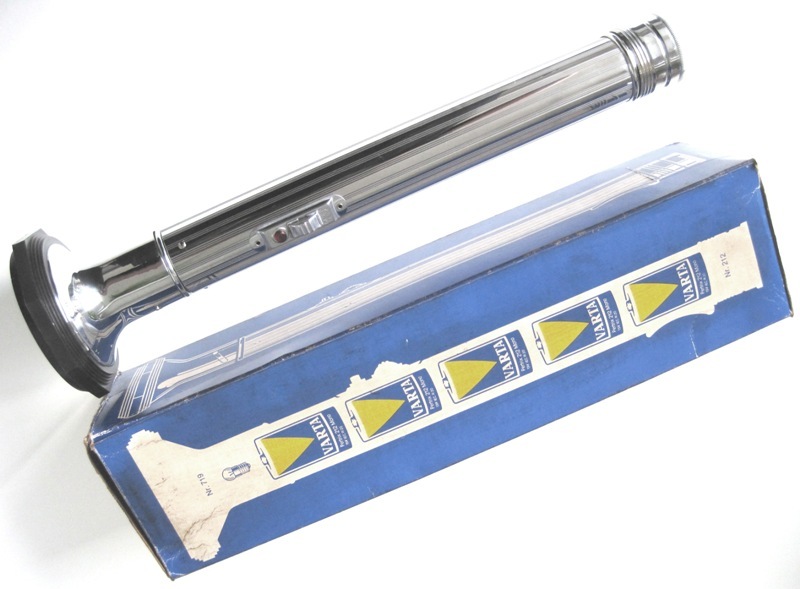NB:Wie heeft ook zulks staaflampen van meer dan (5) cellen uit die tijd laat het zien.Pertrix - Daimon - Artas - Philips hebben ze ook gemaakt maar de meeste lange staalampen boven 5 Cellen kwamen uit China met het logo ''Olifantje - Kraanvogel - Tiger Head Brand - 555 - 333 - ...etc op de schroefdop, dit zijn soms ook wel fraaie lampen met een flinke lengte maar zijn niet zo degelijk als deze ''Ray O Vac'' reus.
