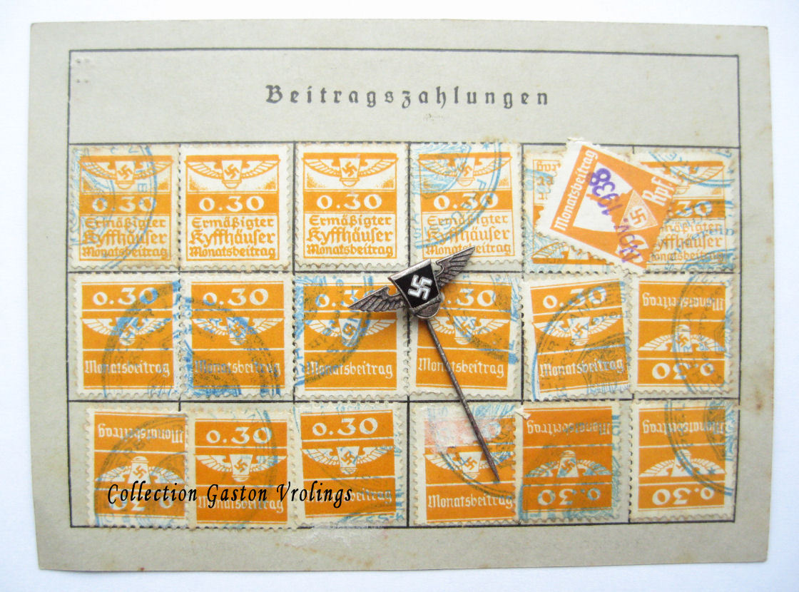 Met betrekking tot het doorgebruiken van de boekjes: Dit klopt! In mijn pre-1933 boekje zit onder andere een mini oorkonde voor een bronzen NSDAP medaille uit 1942, als ook bijvoorbeeld alle NSDAP partij contributiezegeltjes tot en met 1944 ingeplakt. Mijn theorie is dat als iemand eenmaal lid was EN bleef, hij het eenmaal gekregen partijboekje gewoon door kon blijven gebruiken. Verwarrend zijn de boekjes van (vroege) leden die op enig moment in de periode VOOR 1933 uit de partij traden (wellicht door maatschappelijke druk of om hun baan niet verliezen door hun partijlidmaatschap), na herintreding kon hun nieuwe lidmaatschapsdatum worden bijgeschreven in hun oude boekje (daar was zelfs een aparte regel voor op de betreffende pagina!), maar er kon dus heel goed een gat van een aantal jaar tussen zitten. Ook konden nieuw ingetreden leden een nieuw boekje krijgen als ze hun oude kwijt waren geloof ik, dus niet altijd werd het oude boekje weer in gebruik genomen.
