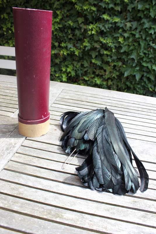 - Gala kepie met zwarte pluim (nog in paarse koker). Niet meer in de beste staat omdat ik er vroeger als kind veel mee heb gespeeld...