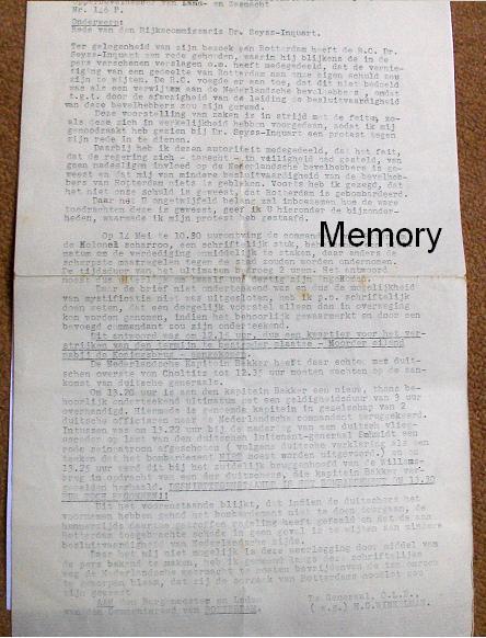 Een afschrift van Generaal Winkelman naar de Burgemeester van Rotterdam....