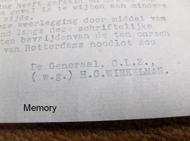 Een afschrift van Generaal Winkelman naar de Burgemeester van Rotterdam....