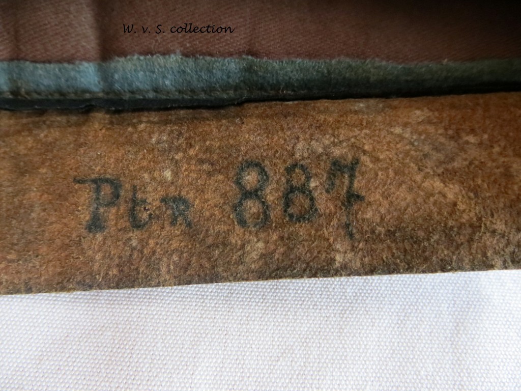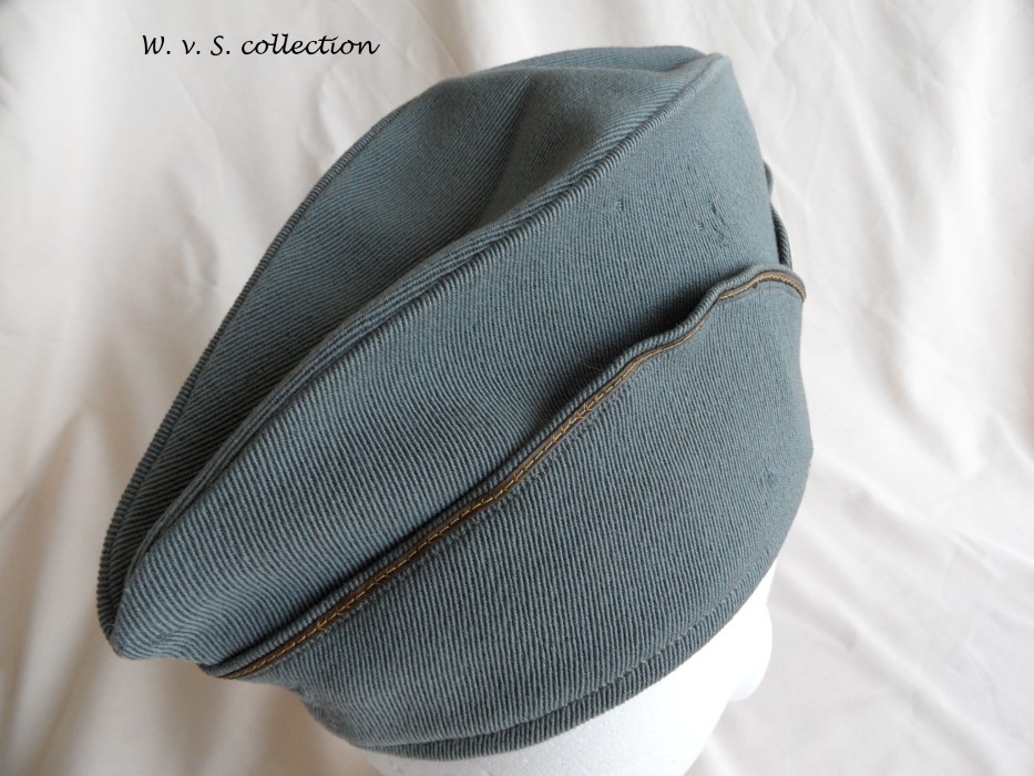 Veldmuts van een officier. Hele lichte motspoor op de zijkant. Geen regimentsnummer of leeuwtje, maar wel binnenin met blauw geschreven PT I VIII