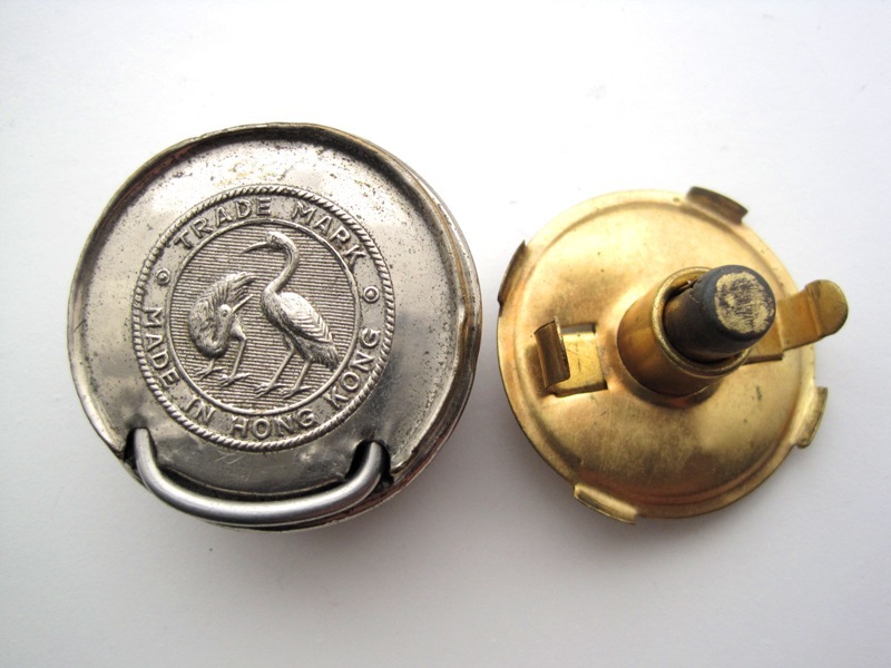 NB: ook hier is het aan uit schuifje nog hetzelfde gebleven als van de bodemvondst, maar die was uit blik vervaardigd was die van messing geweest dan was die nog gaaf gebleven.