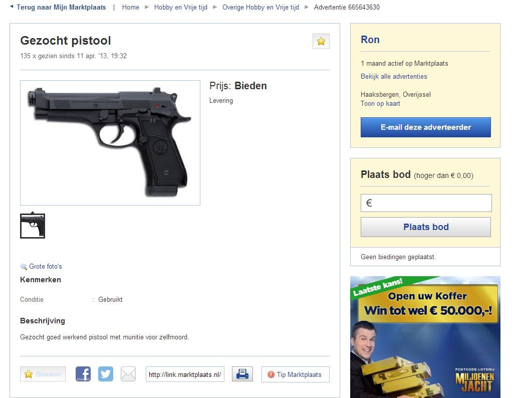 Maar als je een swastika'tje vergeet te bedekken gooien ze het er gelijk af. Onbegrijpelijk dit.custom schreef:Dit is onbegrijpelijk dat dit op Marktplaats wordt toegestaan, deze advertentie is al en dag actueel ondanks tips in strijd met de regels blijft deze gewoon te lang staan had allang verwijderd moeten zijn..