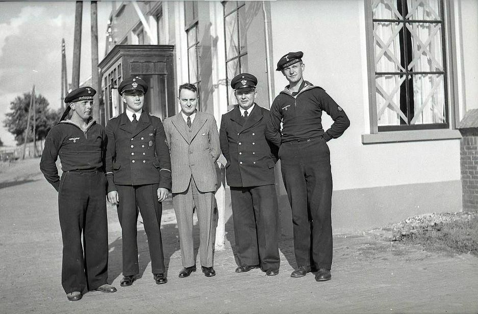 De Hafen-Überwachungsstelle van Zierikzee, de 2 matrozen zijn koeriers van de Kriegsmarine en de 2 soldaten zijn van de Wasserschützpolizei en de man in burgerkleding is van de douane beambte.