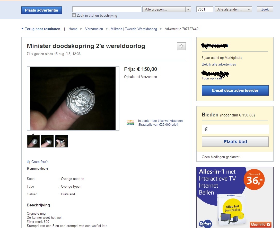 Alle gekheid op een stokje, wat zou een originele Ehrenring op dit moment voor geldelijke waarde hebben?