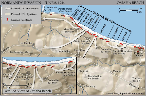 Ik had het al eerder over sector 'Fox Red' bij WN 60, meer oosterlijker van Omaha Beach werd niet aangevallen, omdat het hoogteverschil (de kliffen) te groot was.