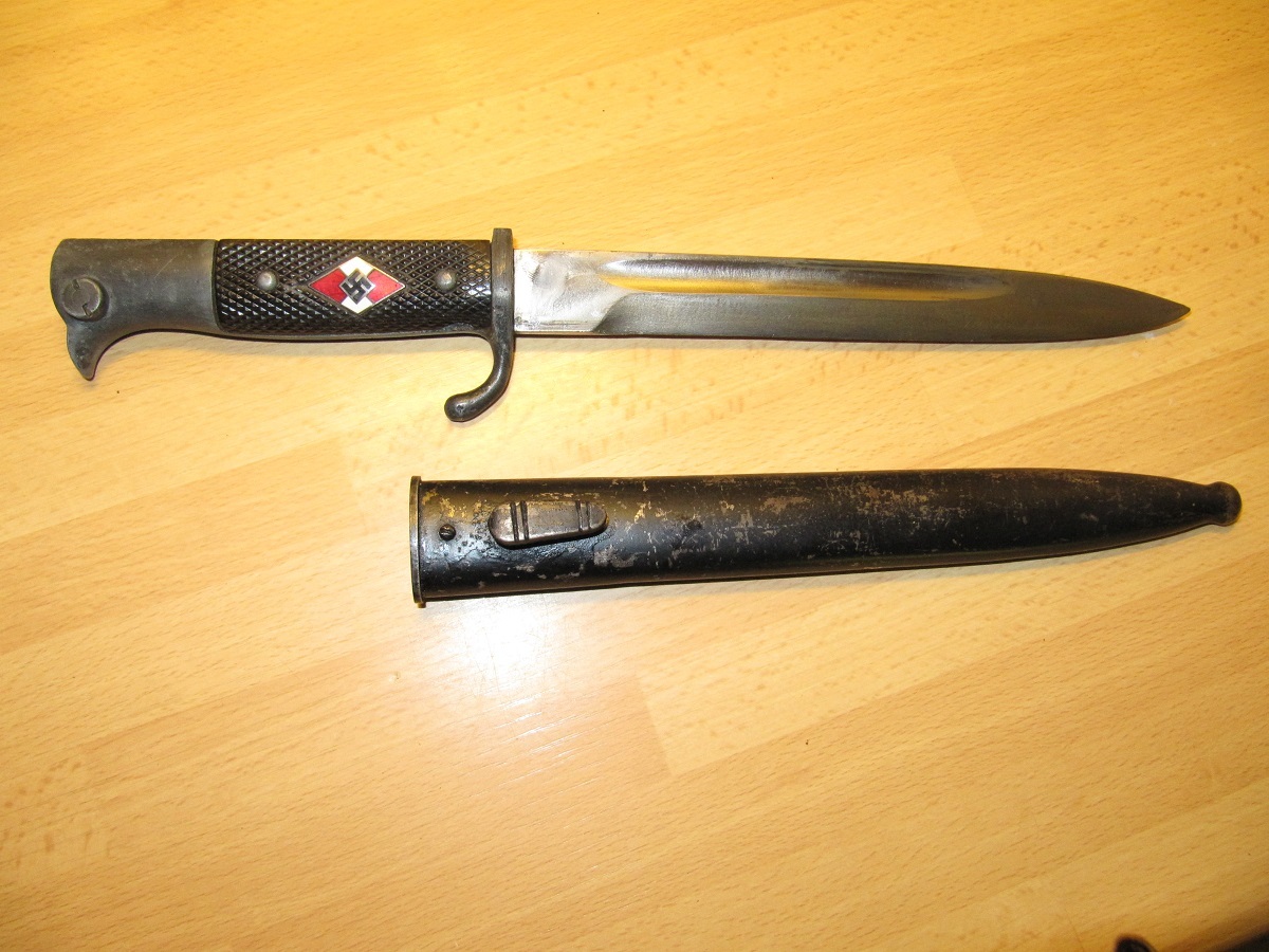 Wat ik en wvd hebben gezegd is dat veel goede bajonetten worden ''veredeld'' tot Hj-bajonetten. Het zou goed kunnen dat de schede origineel is, maar dat betekend niet dat het een originele HJ-bajonet is.