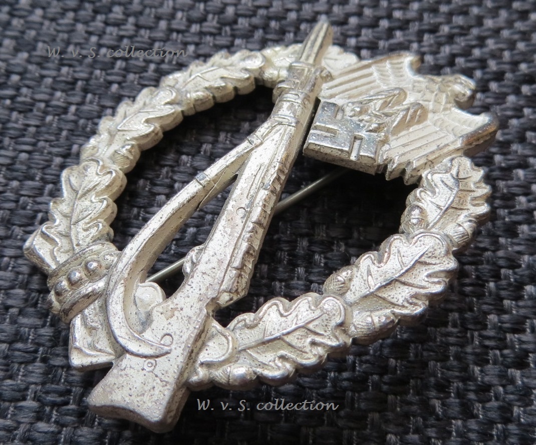 Het Infanterie sturmabzeichen in silber van de maker JFS wat staat voor Josef Feix & Söhne uit Gablonz