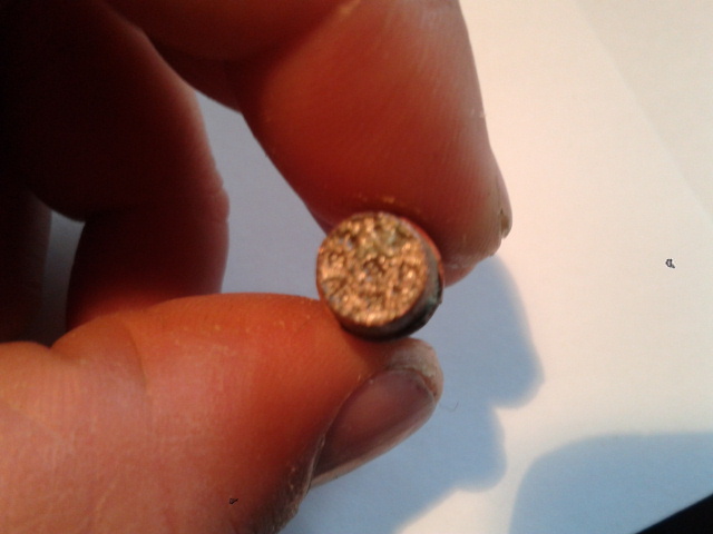 ik heb met mijn detector een kogel gevonden die aardig groot is, ik heb zelf nog nooit zo'n grote gezien.
