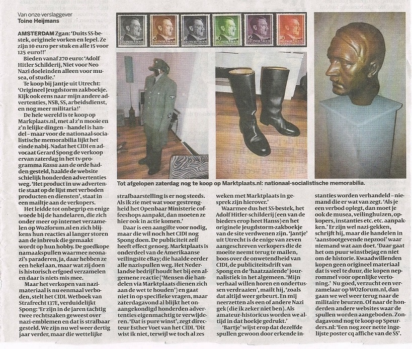 Wel leuk om te lezen dat de media dit forum gevonden heeft, mochten ze een (in hun ogen) "nationaal-socialistische memorabilia-verzamelaar" in documenten/foto's zoeken, ik ben beschikbaar.