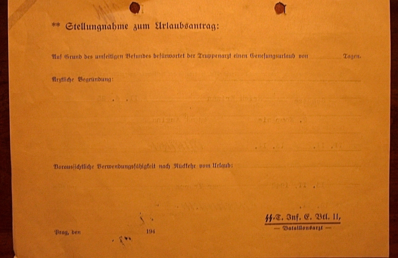 Het volgende document is een bewijs dat er in het strafregister van deze SS geen feiten gevonden zijn,het bewijs werd naar het opleidingsregiment in Praag verstuurd.