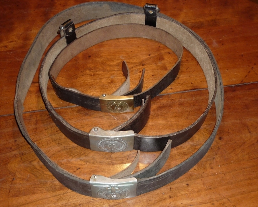 Op de eerste foto liggen bovenaan twee koppelsloten een van de Hitler Jungend (latere uitvoering) en een van de SA,daaronder een jongensriem van de Hitler Jungend,een vroege uitvoering,de afbeelding op het koppelslot daarvan was bijna gelijk aan die van de SA.