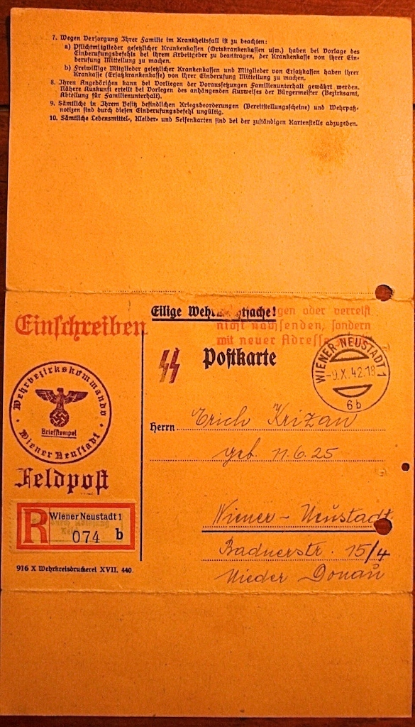 Het 4de document is een terugzendbewijs van het Wehrstammbuch van deze SS-soldaat,de Duitsers wilden graag alles gedocumenteerd hebben en als resultaat daarvan hadden ze