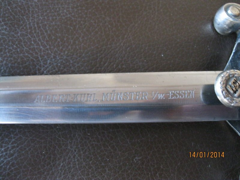 Albert Kuhl was a military outfitters founded in 1909. They had outlets in Munster and Essen. They held the concession for Alcosa and supplied their daggers and swords for private purchase.