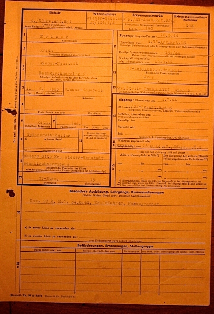 Dit is het laatste document in het SS personeels dossier van deze SSer.