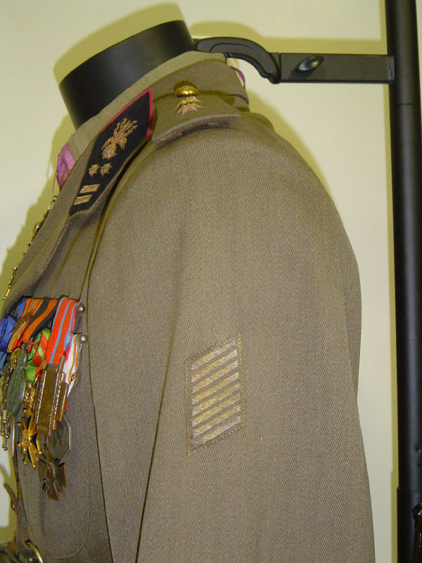 Hij heeft dus de 4 jaren aan het front doorgebrachte en daardoor droeg hij op zijn linker mouw zowel van zijn overjas als van zijn service dress zijn 8 frontstrepen.