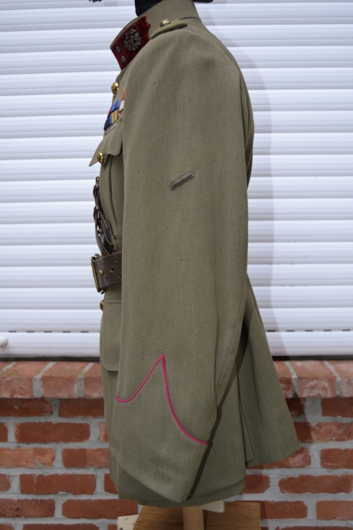 Het uniform is nog een model 1928 met hoge kraag en de kleuren bies op de mouwen. Het is gedateerd juni 1935. Terwijl in juli 1935 de nieuwe uniformen met open kraag in dienst werden genomen in het Belgische leger voor de officieren.