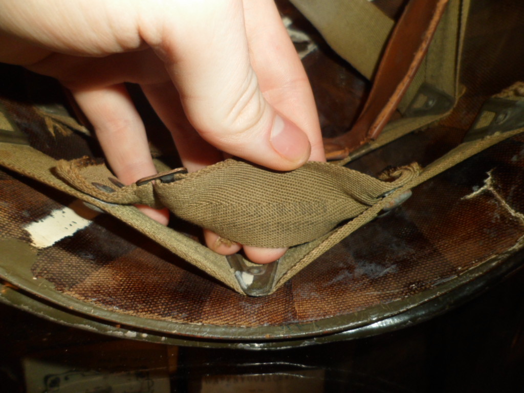 en binnenhelm heeft de juiste kleur banden.the production of M1 shells started over in 1951, so how can we recognize a late war from a postwar? Under the brim there is a number indicating the production lot. If this number is between 0 and 1300 then we have a WW2 era shell. This is true for McCord Radiator manufactured shells, however all Schlueter shells have been produced during WW2.