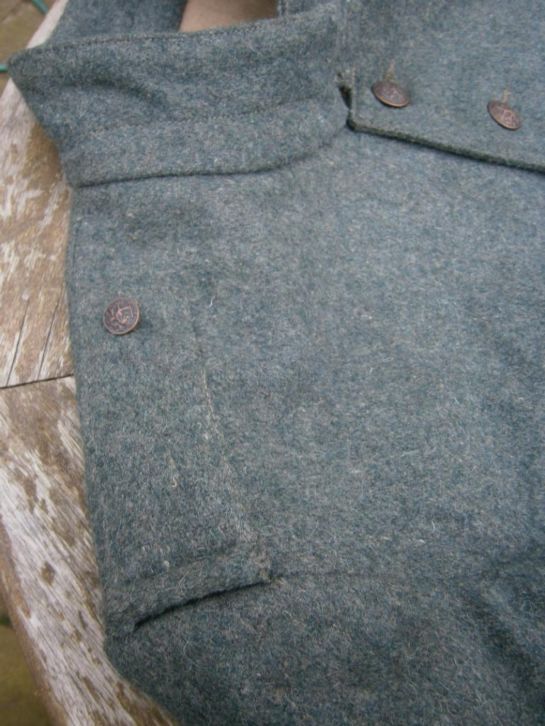 De kleur van de stof ziet er inderdaad anders uit. Buiten dat vind ik het al snel opmerkelijk als zo'n manschap uniform in zulke mooie nieuw staat is, nergens geen één plekje slijtage, mot of versleten wol. Het kan natuurlijk, maar je wordt er al snel alerter van.