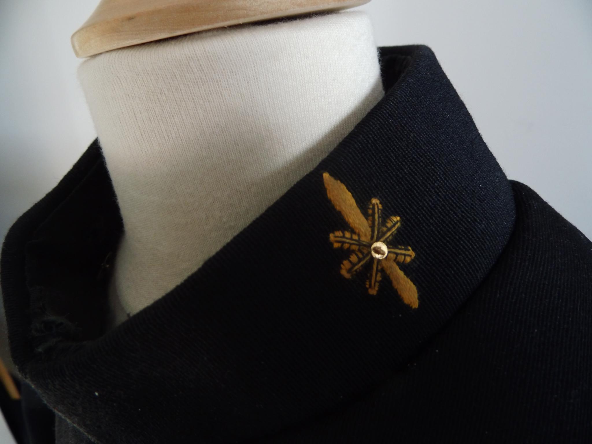 Ik heb toch net zitten kijken aan de kraag, ik kan aan de binnenvoering en kraag niks vinden van aangepast borduurwerk. Aan het embleem an sich valt denk ik niet te zien of het namaak is of niet. Ik heb al meerdere geeldraad geborduurde emblemen gezien, deze is identiek.